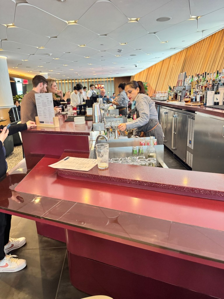 The drink options exceeded most long-haul business lounges. The bartenders made cool cocktails and happily offered an extensive amount of mocktails for people like me. However, the true gem was the barista coffee which made better lattes than Starbucks. They also happily made drinks to go.