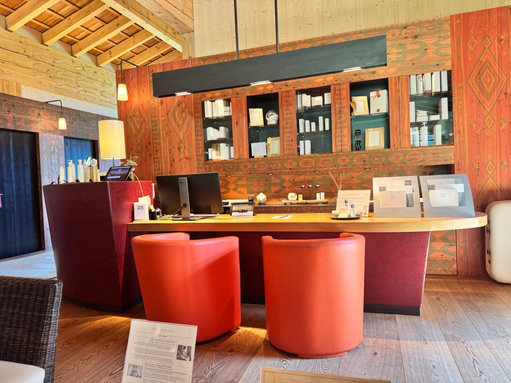 The hotel arranged a private taxi to take us from Venice to the property. It is a beautiful 3-hour drive into the mountains. When we arrived, a staff member took our bags and we were escorted to the lobby.