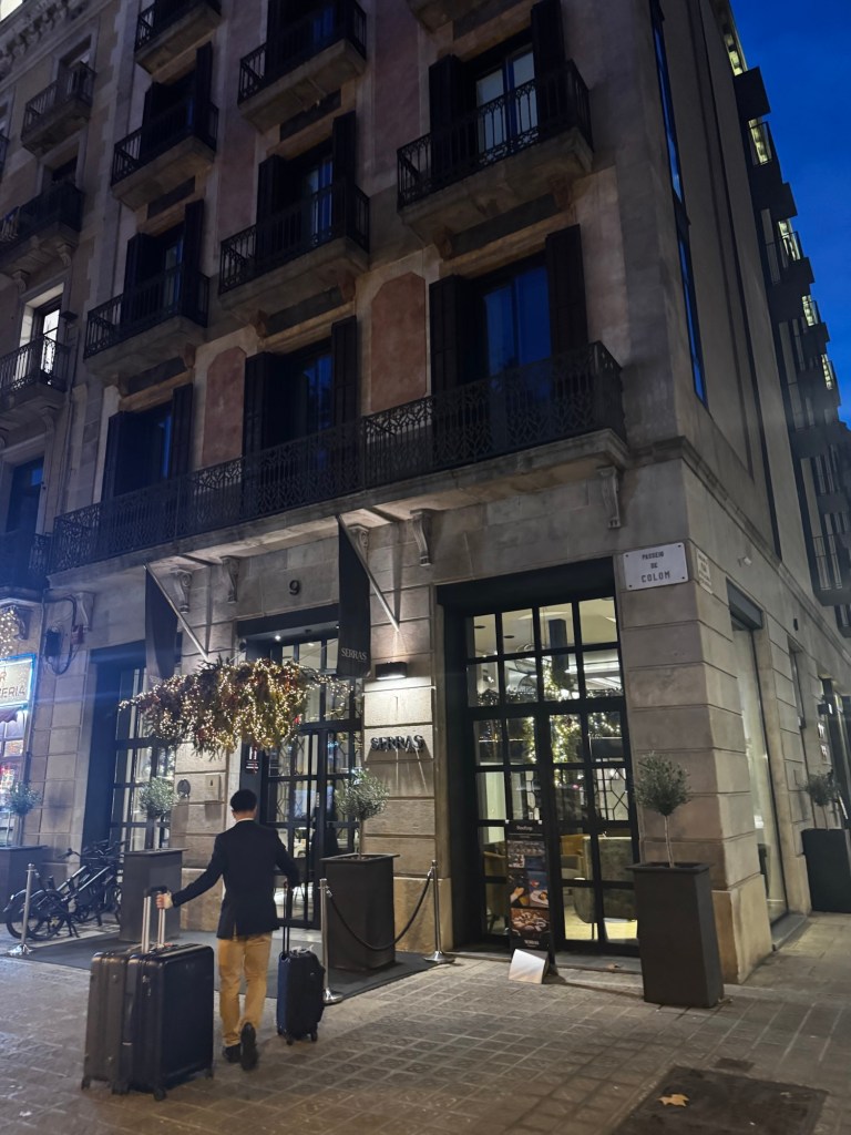 We arrived late in the afternoon to dark, rainy weather — not Barcelona at its most glamorous. The Serras is an intimate hotel, so there isn’t a doorman stationed outside at all times. As our Blacklane transfer pulled up, I whispered to Matt, “Are we really going to have to carry our own bags in?”