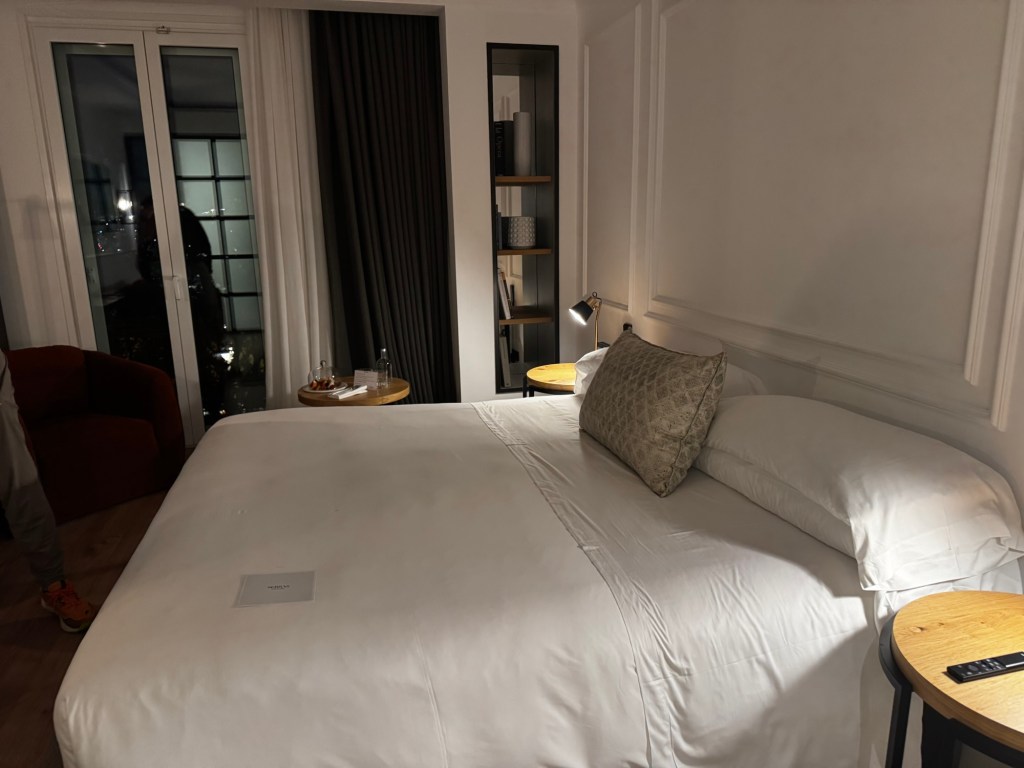 We were upgraded to a larger room with a small balcony overlooking the Barcelona waterfront. While the weather didn’t cooperate enough for us to fully enjoy the outdoor space, the room itself was excellent: a very comfortable bed, a well-designed bathroom, and thoughtful amenities throughout. Everything felt intentional and high quality without being overdone.
