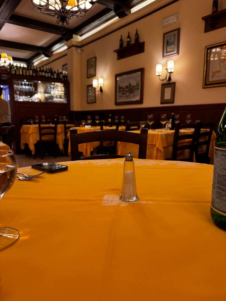 Dinner was intentionally strategic: Il Profeta, a place I’d been to 25 years earlier with my parents, just a five-minute walk from the hotel. If anything went wrong, we could get back quickly.